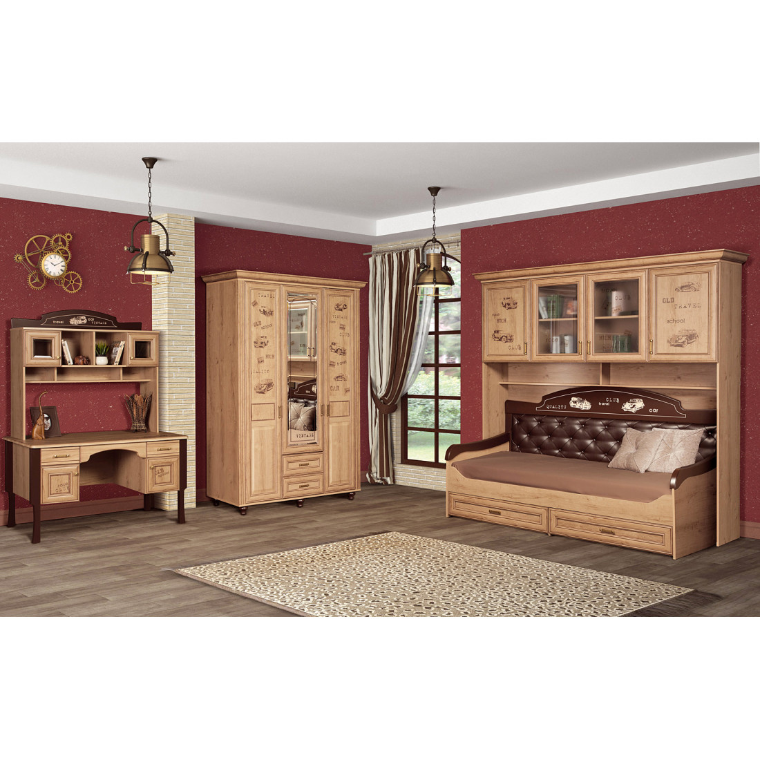 Корпус: ДСП, декор – дуб ридинг. Основание кровати – ламели